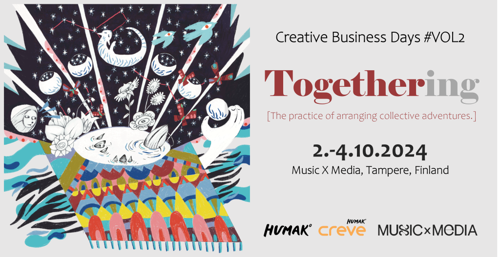 Creven luovien alojen yritystapahtuma Creative Business Days toteutetaan tänä vuonna osana Music X Mediaa 2.-4.10. Yhteistyön kautta tavoitellaan kohderyhmien yhteen tuomista sekä uudenlaisia tapahtumasisältöjä. ”Yhteistyö Humakin ja Creven kanssa antaa meille mahdollisuuden tavoittaa myös uusia yleisöjä. Osaamisen kehittämisen erilaiset käytännön kokeilut tuovat tapahtumaan uutta kulmaa”, kertoo toimitusjohtaja Jani Jalonen Music X Mediasta. ”Music X Median […]